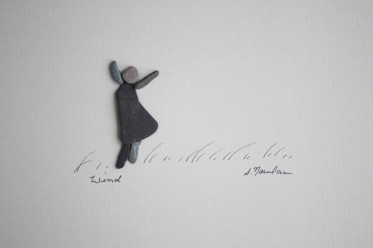 “I have been gathering pebbles all my life.I started making pictures with them thirteen years ago, on one of the beaches near my town of Pictou, Nova Scotia.I studied Fine Arts and Environmental studies at the University of Waterloo in Ontario. It’s the combination of these two passions that have lead me to this way of life. For that is what it has become.It all started with a handful of pebbles. One day I watched my three year old son search the beach for pebbles all afternoon. After finding one he liked, he would saunter back to me and put it securely in my pocket. He had chosen them all so carefully, I felt compelled to make something special with them. I made two pictures that day, and since then I have made many more, but with each one I try to maintain a feeling of something special.”